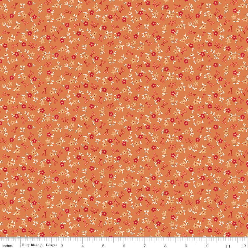 Farmer's Daughter Fabric by Lori Holt for Riley Blake - Orange Gold Small Floral Fabric