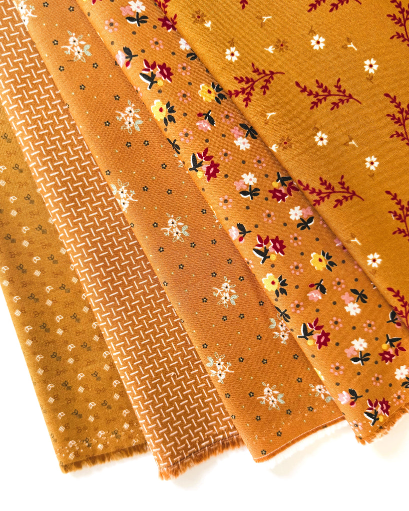 Lori Holt Gentler Times Fabric Fat Quarter Bundle - 5pc Yellow/Gold Color Bundle